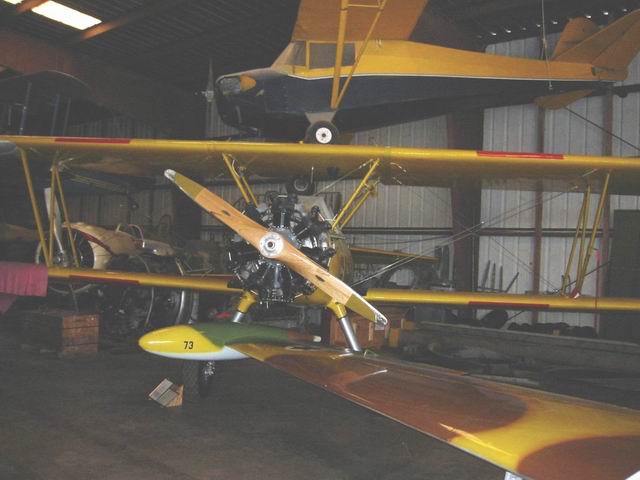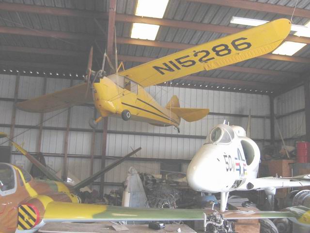 The aircraft hanging from the ceiling is a Taylorcraft, which was the first aircraft which I owned. Underneath is a far more valuable machine a Boeing Stearman. |